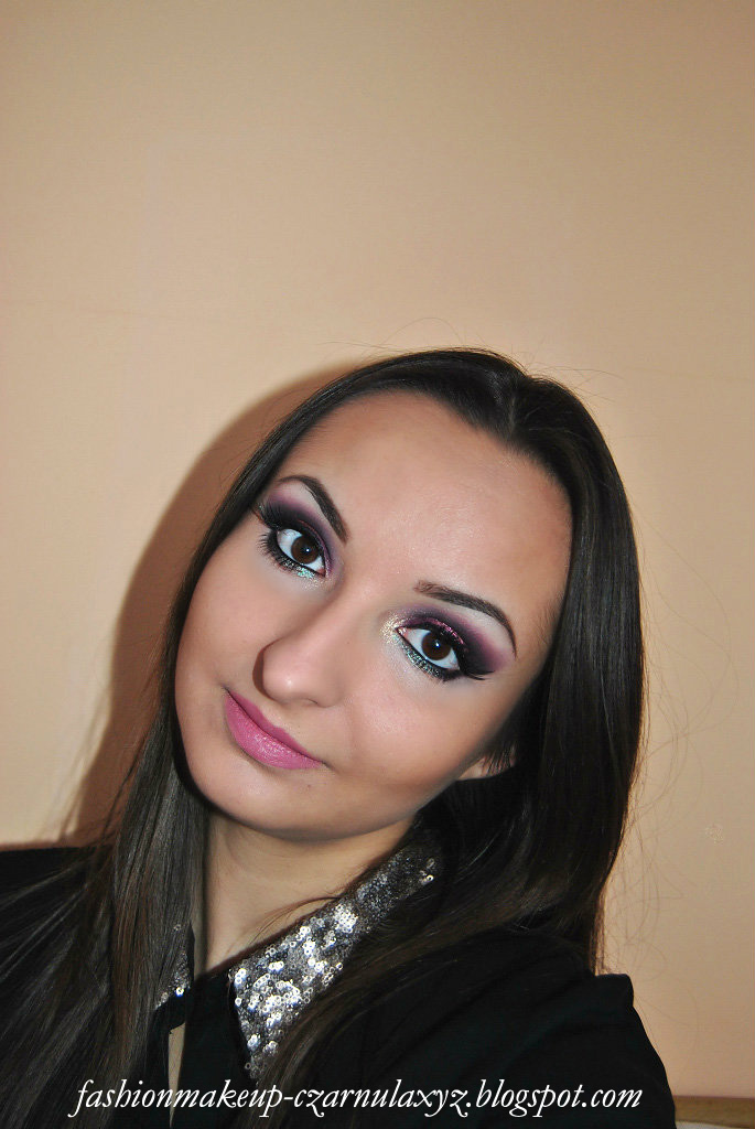 Jedna z moich czytelniczek poprosiła mnie abym wykonała makijaż sylwestrowy w odcieniu szaro-srebrno-czarnym. Muszę przyznać, że już od dłuższego czasu przymierzałam się do wykonania makijażu właśnie w tych kolorach, głównie z myślą o mojej srebrnej sukience na sylwestra. Wykonując ten makijaż inspirowałam się kolorami zimy stąd srebro, biel, niebieski.Całość utrzymana jest w chłodnej tonacji.